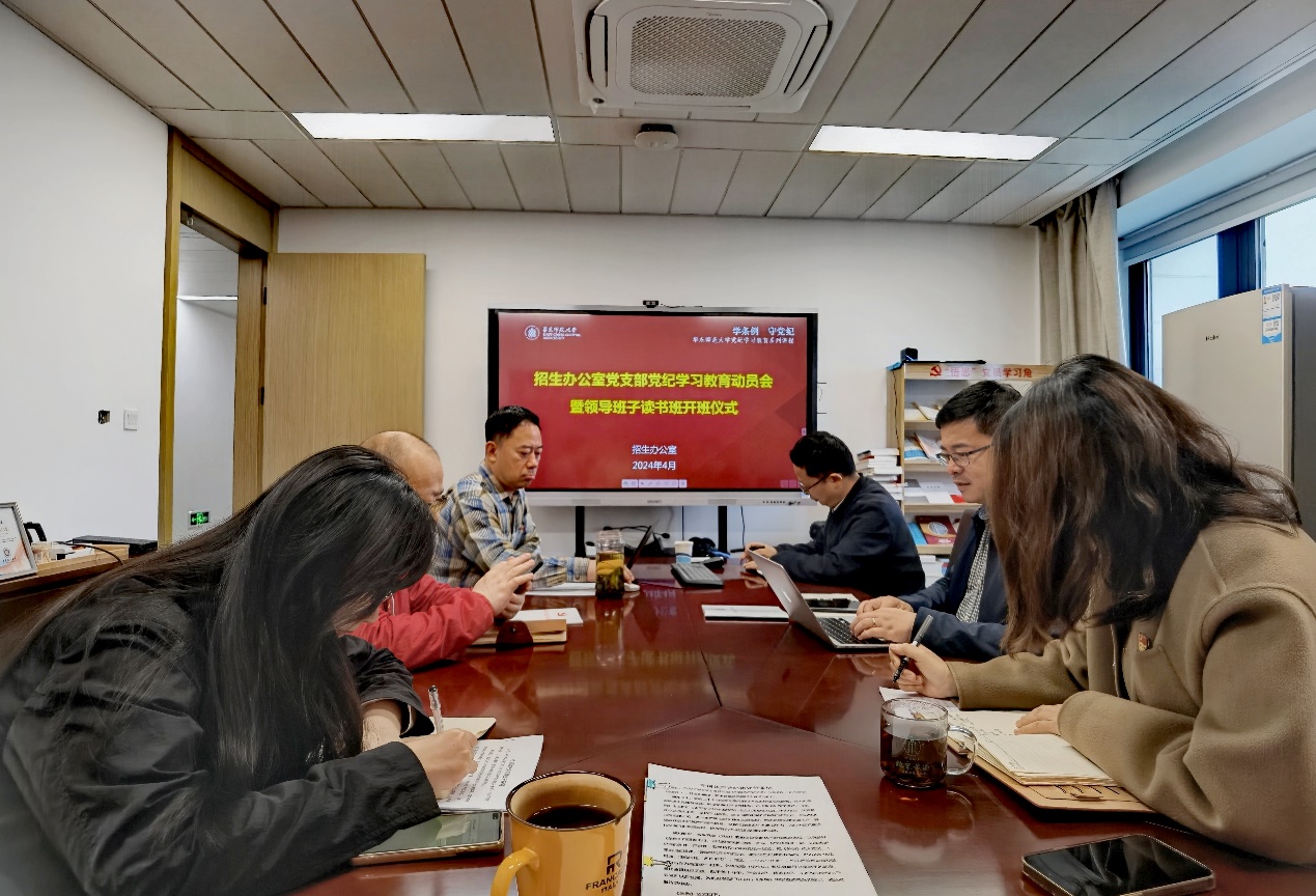 为深入学习贯彻习近平总书记关于党的自我革命的重要思想,落实学校党委、机关党委关于党纪学习教育的工作部署,4月29日上午,招生办公室党支部召开党纪学习教育动员会暨领导班子读书班开班仪式。校纪委党风廉政与案件审理室主任、机关纪委委员汪海作专题讲座,招生办公室主任周立旻列席,招生办公室党支部书记、副主任贾吉丰主持会议。