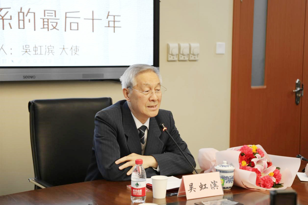 3月27日下午,应华东师范大学俄罗斯研究中心、国际关系与地区发展研究院“大使讲坛”邀请,中国前驻塔吉克斯坦、白俄罗斯、土库曼斯坦大使,中国中亚友好协会副会长吴虹滨作“庆祝中俄建交70周年系列讲座”《中苏关系的最后十年》主题演讲。讲座于理科大楼举行,由国际关系与地区发展研究院党总支书记、俄罗斯研究中心副主任贝文力主持。来自我校各院系和兄弟院校的师生代表共同聆听了演讲。
