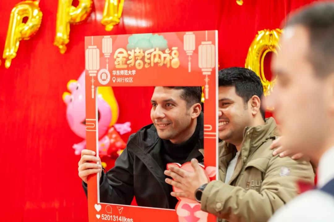 1月30日是农历腊月二十五,一年一度的迎新春师生同乐会在师生们的翘首以盼中到来,经过精心的装饰,闵行校区华闵餐厅一楼喜气洋洋,年味十足。当天,寒假留校的中外学生与学校领导、教职员工欢聚一堂,喜迎猪年春节。当天下午,游园会活动首先在华闵餐厅内火热开场。与“小猪佩奇”的亲密合影,与新春灯谜的头脑交锋,与棉花糖的甜蜜邂逅,与玻璃宝“猪”的斗智斗勇……一个又一个热闹的游园活动不仅为同乐会做了充分预热,更让同学们在欢乐的互动游戏中感受到了学校大家庭热烈的过年气氛。