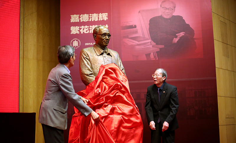 刘佛年校长的继任者,袁运开、张瑞琨两位老校长共同为塑像揭幕