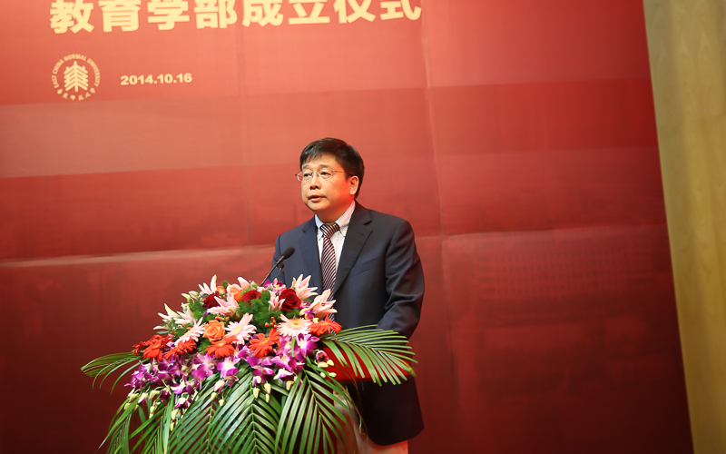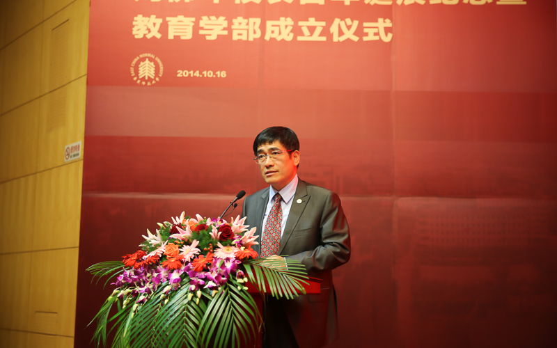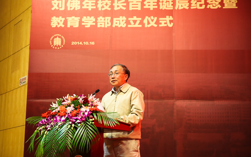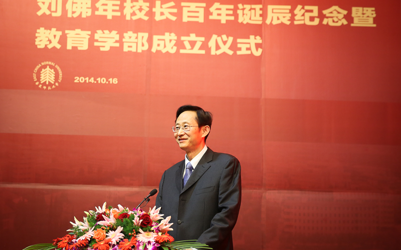 校党委书记童世骏在讲话中指出,刘佛年校长教育爱国、追求卓越的办学思想,体现了他作为教育家的情怀;刘佛年校长尊重规律、敢于创新的办学理念,体现了他作为教育学家的智慧;刘佛年校长忠诚宽厚、求实求真的高尚品德,体现了他作为学人的坚守。童世骏特别强调了刘佛年校长较早提出的“国际化办学思路”,以及在学校的代代相传。他说,刘佛年校长早年曾先后求学于英国伦敦大学、剑桥大学、法国巴黎大学,具有非常开阔的国际视野。改革开放初期,百废待兴之时,刘校长就较早提出,整个学校的建设,尤其是教育学科的建设,要瞄准国际最好的大学来努力。当前,我校在国际化办学方面已经走在全国高校的最前列,这种办学理念的坚持和继承,既得益与华东师范大学深厚的文脉传承,无疑也得益于刘佛年校长对于国际化办学的思路和眼光。童世骏还指出,教育学部的成立是我校强化办学特色、实现学校发展目标的一项战略选择,是完善高校内部治理结构、优化现代大学治理结构的重要探索,也是对国家重大战略需求和教育改革实践的积极回应。童世骏代表学校对教育学部及所属学院的领导班子和全体教职工提出了几点希望和要求:一是希望学部的各位负责同志要有创业者的心态,以教育学部的发展为己任,加强班子自身建设,认真做好各项工作,不辜负大家的信任和期望;二是希望各位老师一如既往地支持教育学部及所属学院党政班子的工作,确保实现顺利过渡,使得新成立的教育学部让所有的参与者和后继者感到欣慰和骄傲;三是希望通过教育学部的进一步试点,可以形成更为成熟的经验,在全校进行推广,推进学校全面的改革和发展。