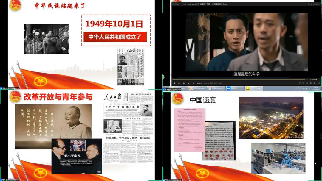 备课交流会上,“四史”宣讲队成员以小组为单位分别进行了试讲。从社会主义的思潮演变到抗战时期江南新四军在游击战中发展壮大的原因,到改革开放中的经济特区……各组同学从有代表性的历史事件讲起,从一个个鲜活的案例讲起,从对进入新时代的点滴感知和体会讲起。因疫情未能返校的宣讲队成员也全程在线,或云端试讲,或全程学习,或参与交流。