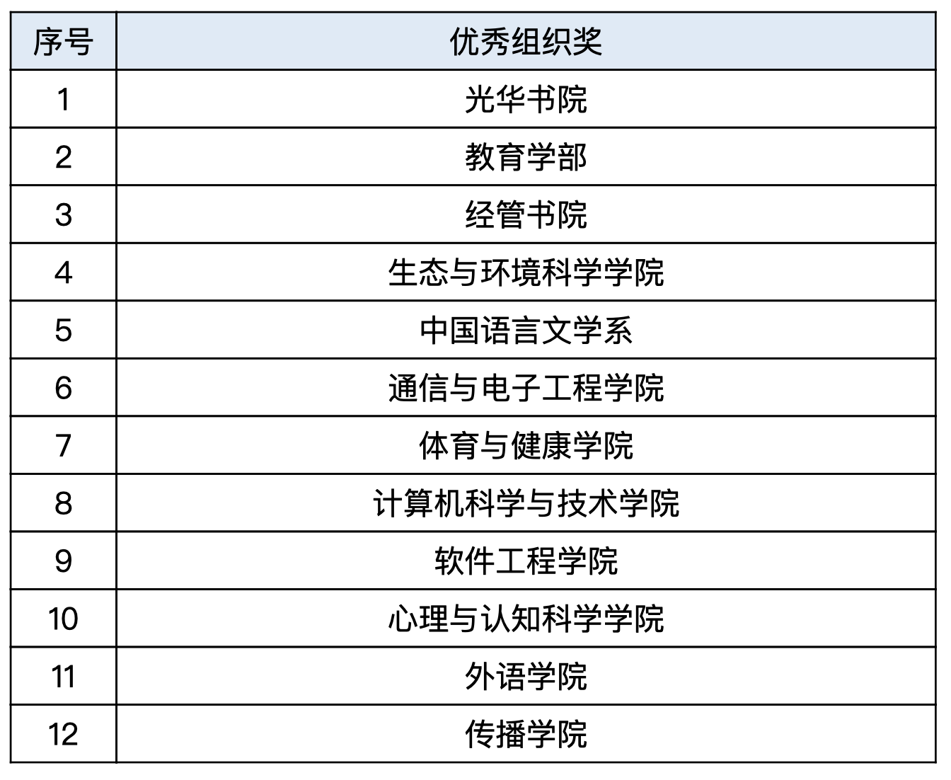 优秀组织奖获奖名单(排名不分先后)