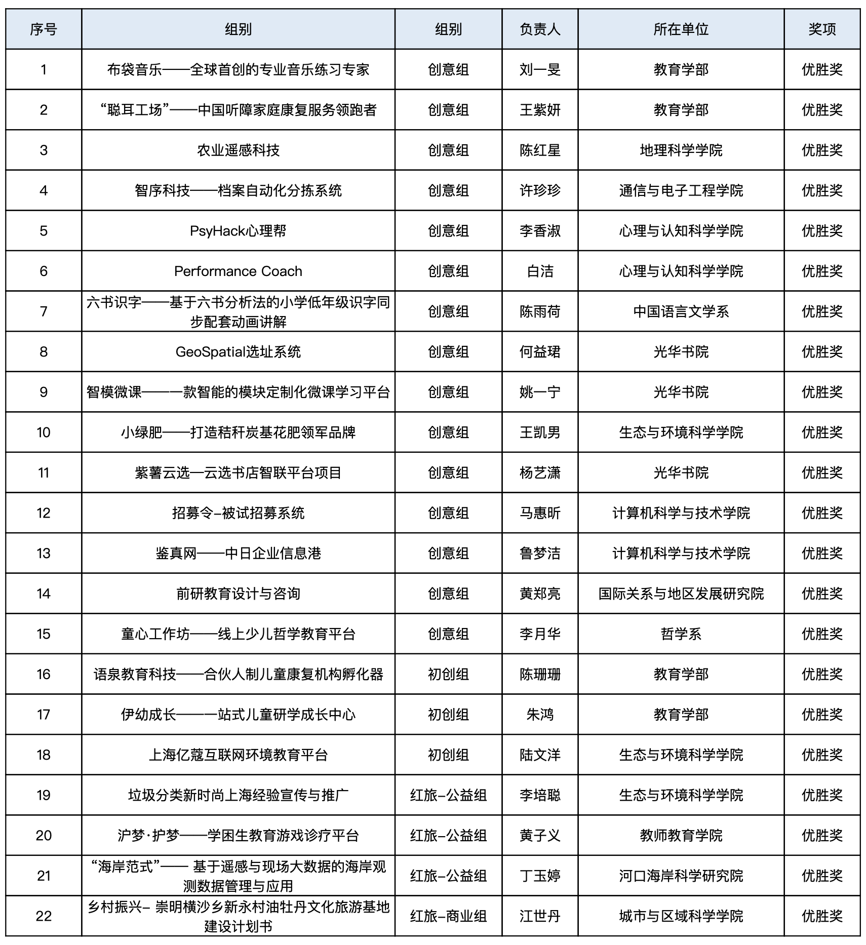 优胜奖获奖名单