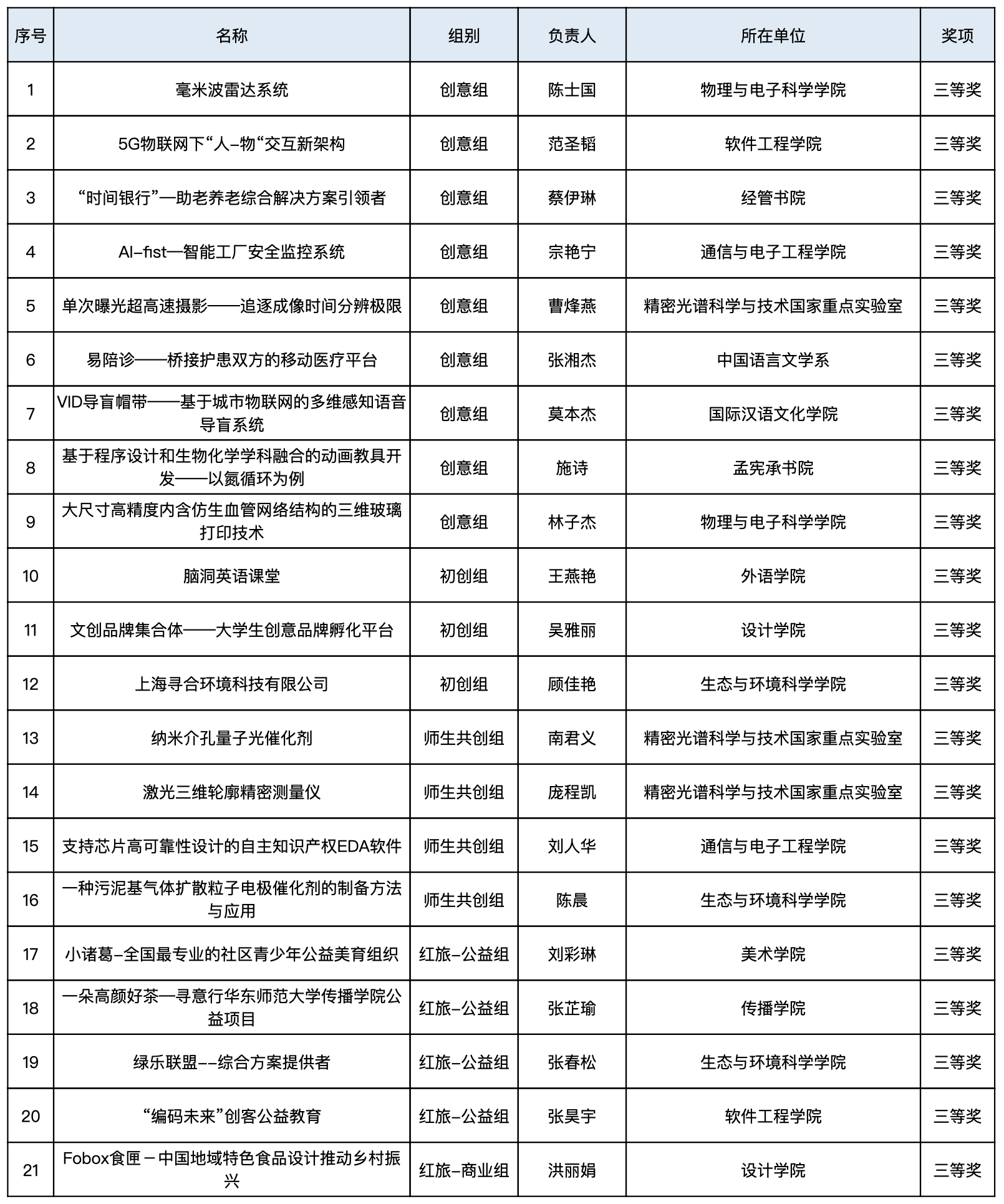 三等奖获奖名单