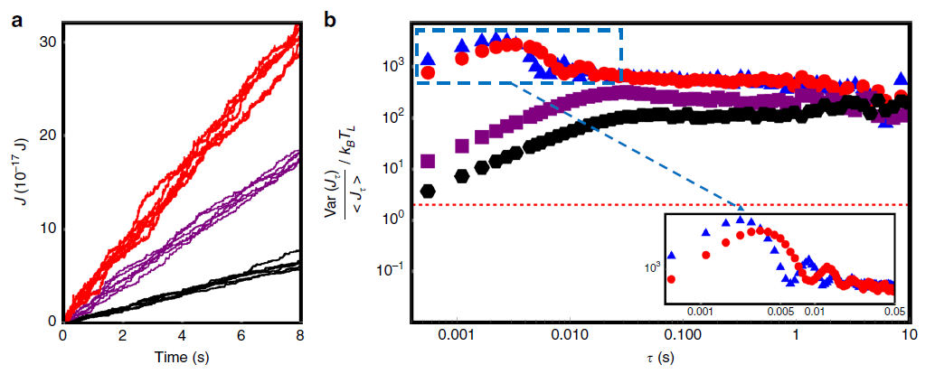 由于热力学第二定律对小系统中的瞬时情况并不适用,新的定理需要被证明和发展。热力学不确定关系作为非平衡热力学领域中的新发现的重要不等式近期受到极大关注。该团队首次在实验中证明了测量非平衡稳态热流密度可达到的最高精度,验证了热力学不确定关系,并证明在强耦合区间该关系式同样成立。