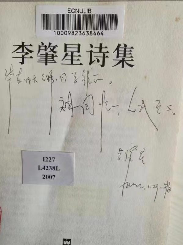 会谈结束时,华东师大国际与比较教育研究所彭正梅教授请李肇星先生为华东师大师生们写几句话。先生欣然同意,在彭老师带去的华东师大图书馆馆藏图书《李肇星诗集》写上:祖国唯一,人民至上,华东师大老师和同学雅正。(书已送回图书馆保存)