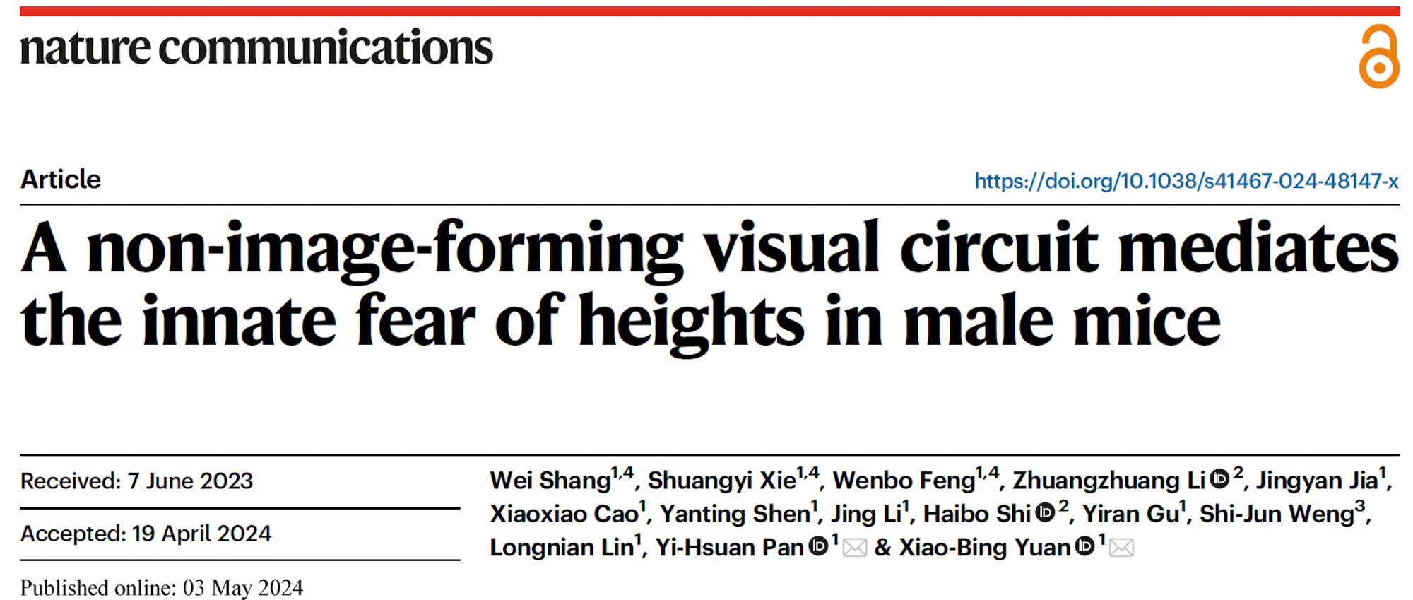 5月3日,华东师范大学生命科学学院袁小兵/潘逸萱团队在Nature Communications 发表题为 A non-image-forming visual circuit mediates the innate fear of heights in male mice 的研究论文,他们对先天恐高反应开展研究,意外发现小鼠大脑中的非成像视觉系统诱发了恐高反应。