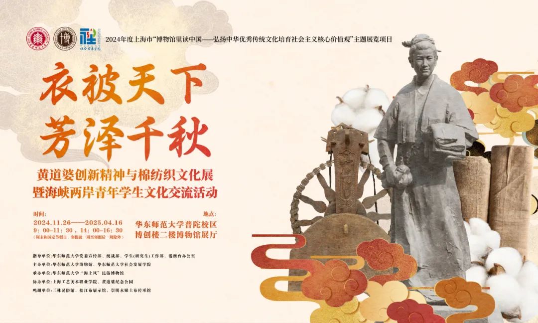 本次活动由华东师范大学党委宣传部、党委统战部、党委学生(研究生)工作部、港澳台办公室指导,华东师范大学博物馆、社会发展学院主办,华东师范大学“海上风”民俗博物馆承办,上海工艺美术职业学院、黄道婆纪念公园协办,三林民俗馆、松江布展示馆、崇明永娣土布传承馆提供支持。