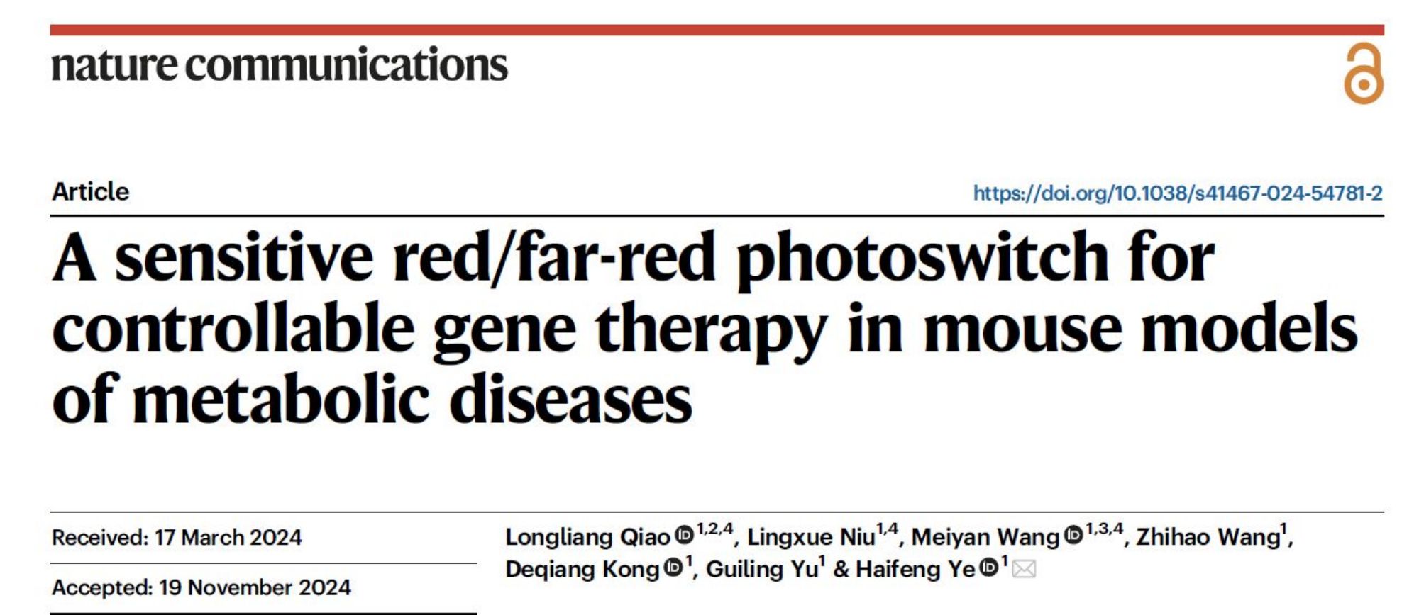 Nature Communications 刊发叶海峰团队研究成果