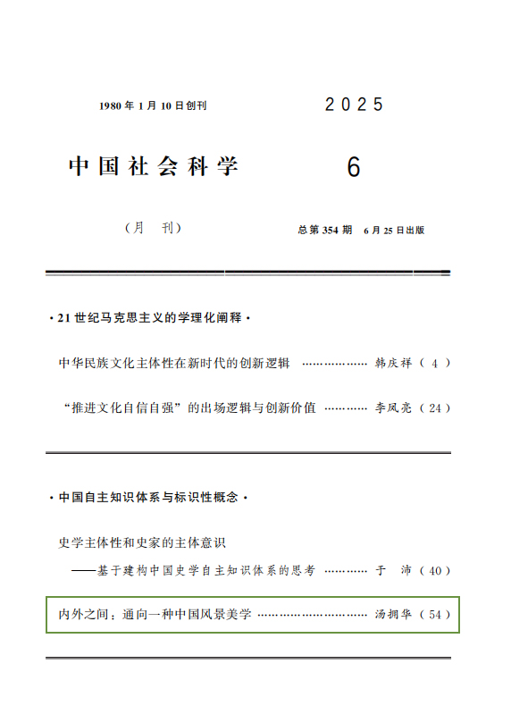 华东师范大学中文系教授汤拥华《内外之间:通向一种中国风景美学》一文刊登在《中国社会科学》2025年第6期。