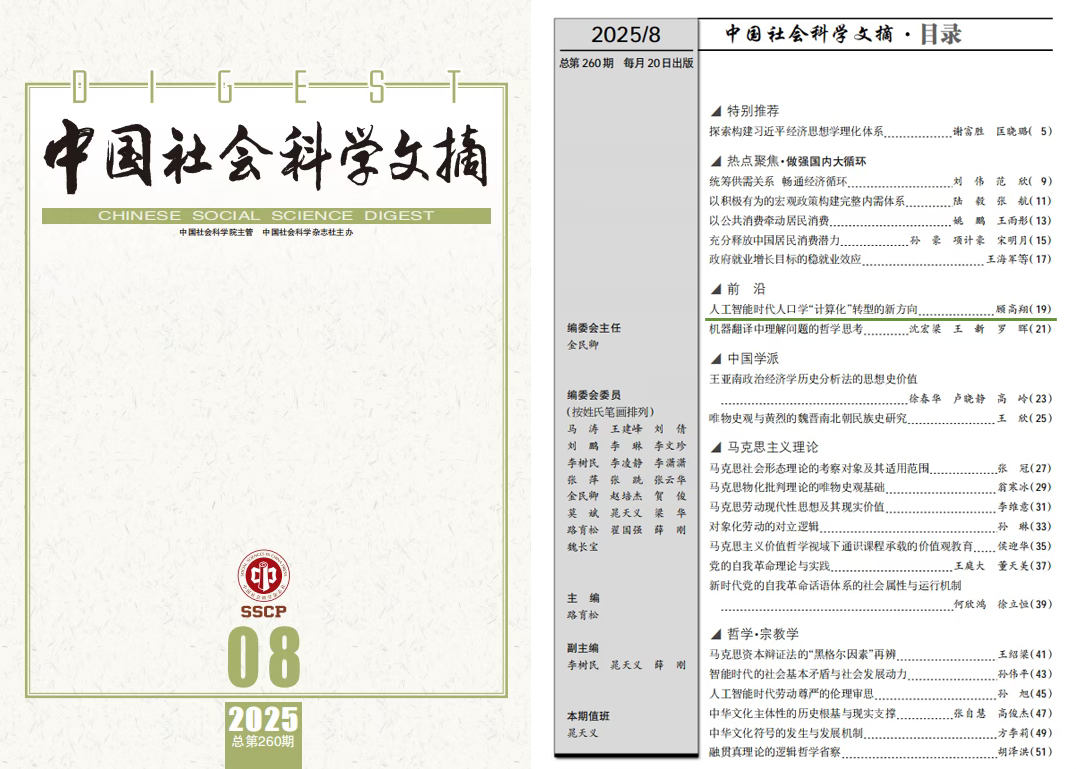 09|顾高翔副研究员文章被《中国社会科学文摘》全文转载,探讨人工智能时代人口学“计算化”转型的新方向