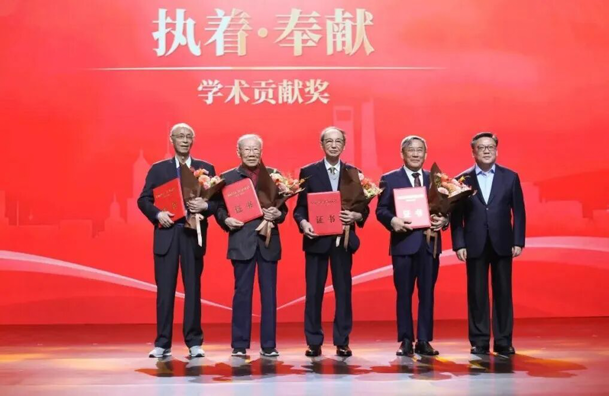 殷德生教授作为一等奖获奖代表上台领奖(右三)