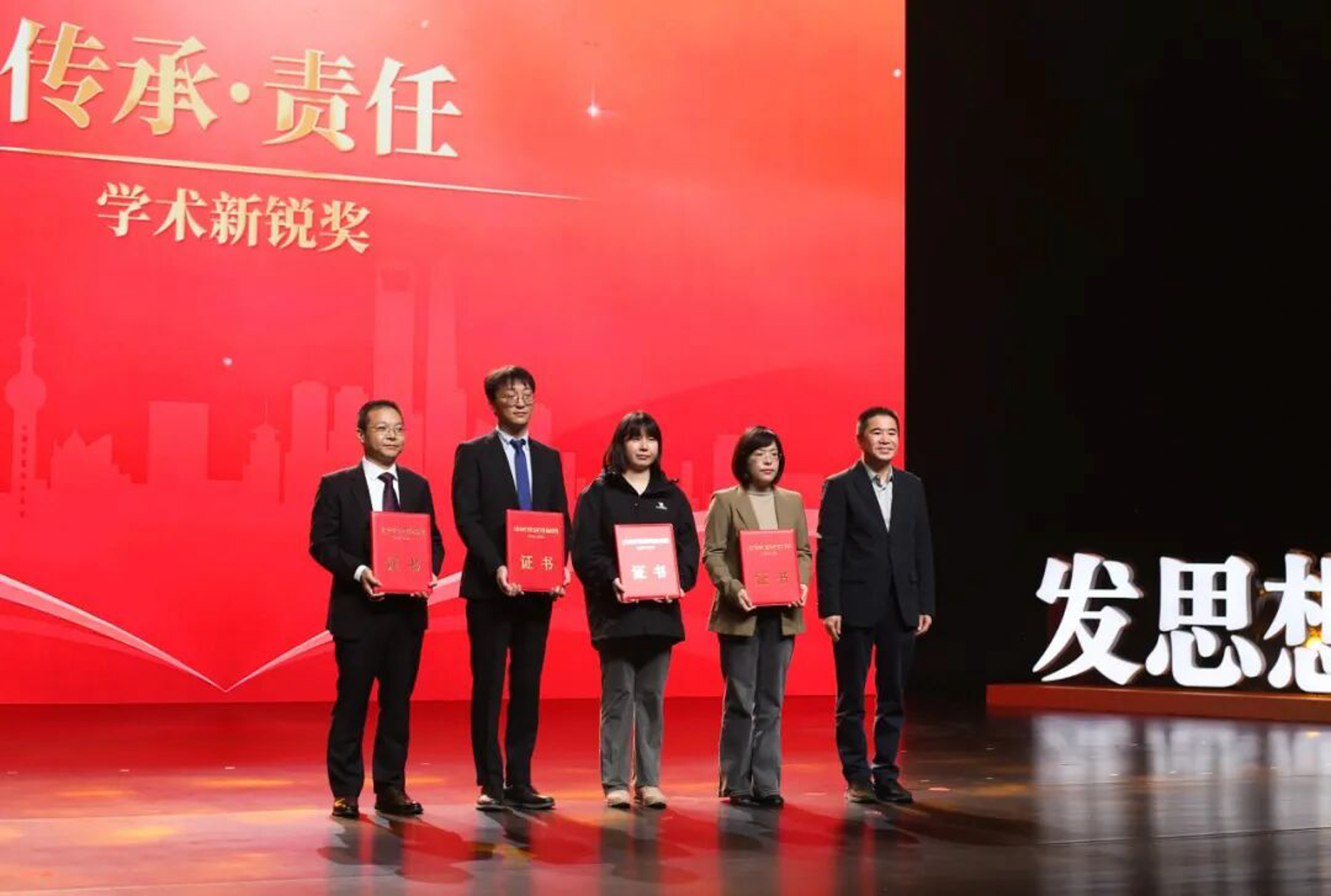 闫方洁教授作为学术新锐奖代表上台领奖(右二)