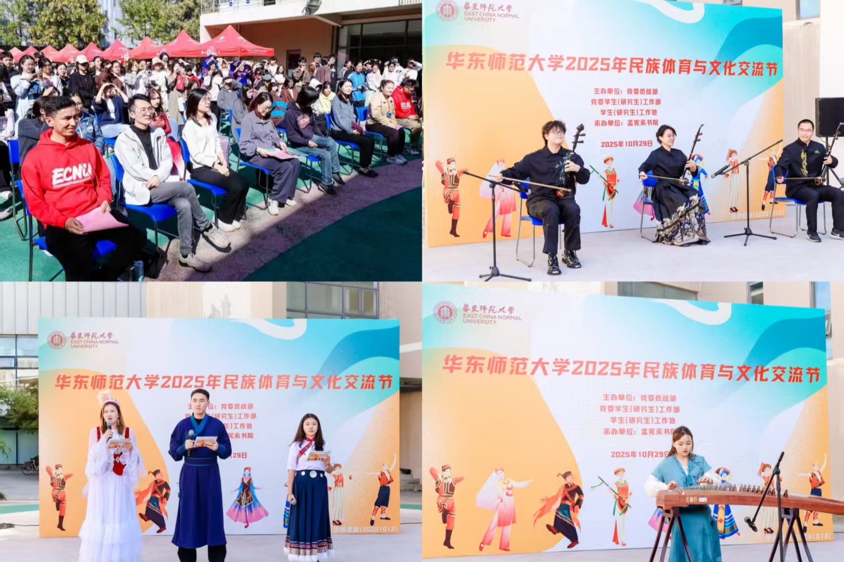 2025年民族体育文化交流活动在闵行校区学生之家C区广场举行。来自汉族、满族、藏族、哈萨克族、维吾尔族等多个民族的师生欢聚一堂,共展民族风采,共叙团结情谊。