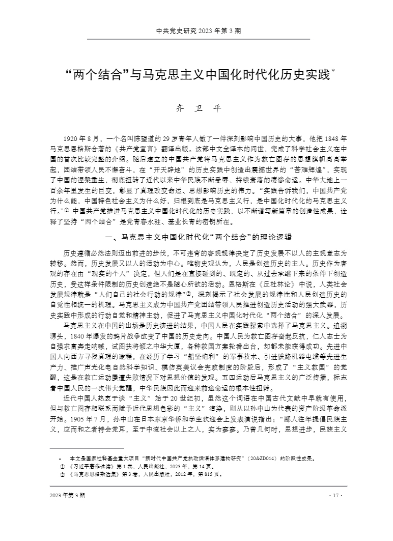 《“两个结合”与马克思主义中国化时代化历史实践》