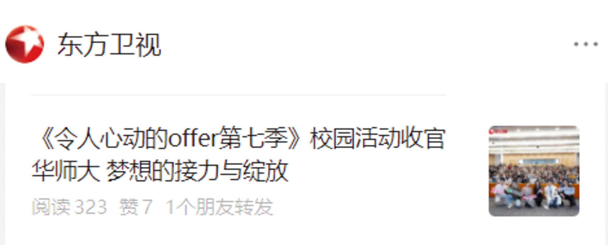 东方卫视也对本次校园活动进行了报道,点击下方图片链接跳转相关报道,获取更多现场精彩瞬间与独家视角。