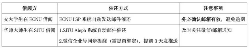 B. 离校要求:需同时归还SJTU和ECNU的图书馆图书;建议离校前1-2天完成归还,避免因同步延迟影响离校。