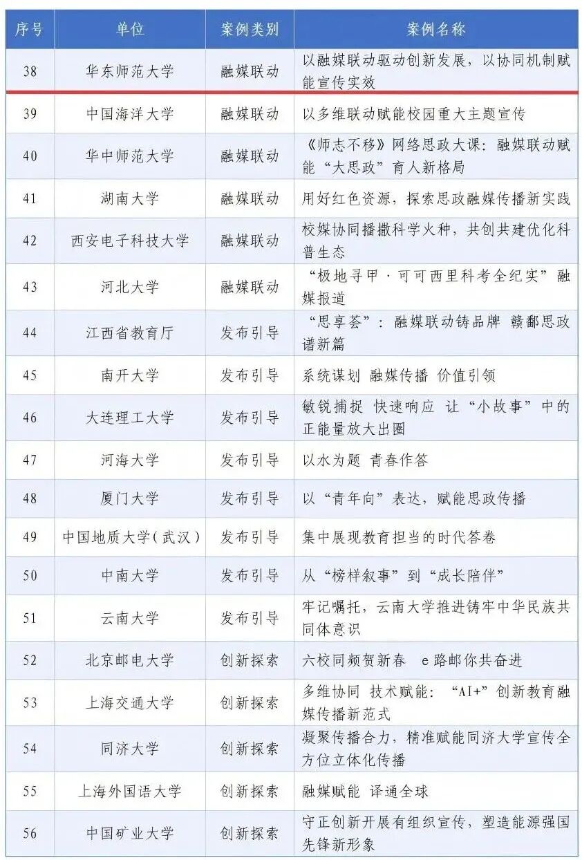 作为教育融媒体创新创作基地,华东师范大学党委宣传部持续优化联动机制、创新内容表达、深化技术应用,紧抓重大宣传节点,纵向联动教育部政务新媒体,横向协同兄弟高校,广泛联动主流媒体和互联网平台资源,通过选题共议、内容共创、传播共振,形成了全域资源高效协同的教育融媒联动新模式。2025年以来推出12个以联动为主要生产方式的重点策划融媒作品,以精心策划、青春话语、创新形式讲好大国强师教育故事。