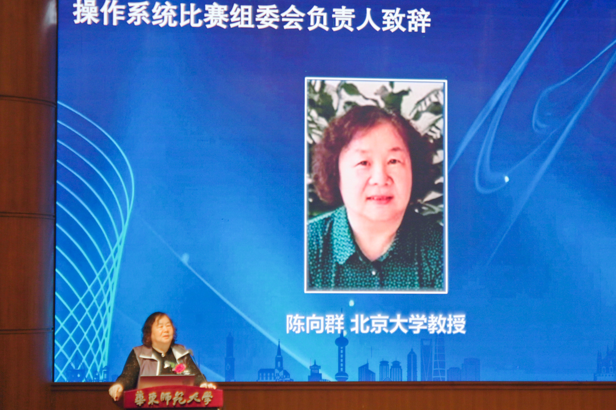 全国大学生操作系统设计赛组委会核心负责人、北京大学陈向群教授率先致辞。陈向群首先祝贺华东区域赛的顺利举办,并对获奖团队表示赞赏。她指出,操作系统作为计算生态的核心,其人才培养对国家信息产业发展至关重要。全国大赛的持续举办,正是为了激发学生对系统软件的兴趣,培养具备扎实理论和实践能力的创新人才。