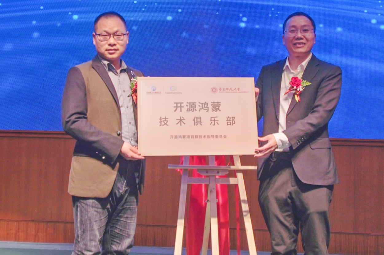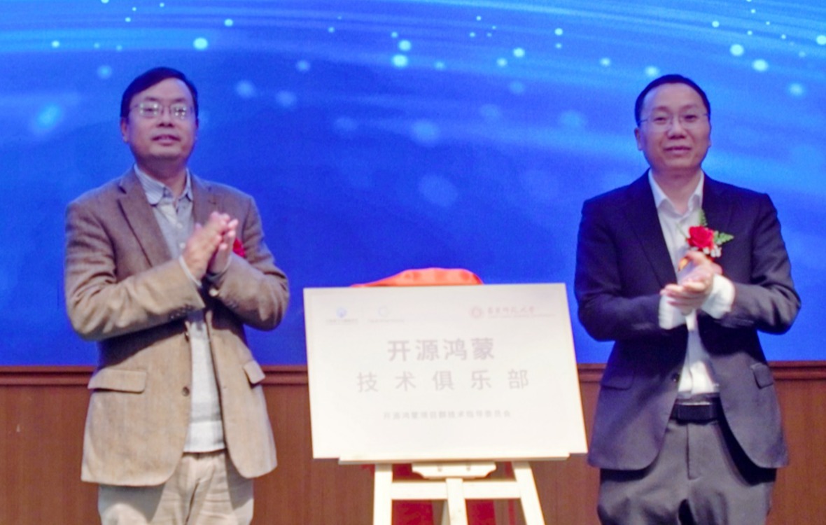 张桂戌院长与陈海波主席共同为“华东师范大学开源鸿蒙技术俱乐部”揭牌