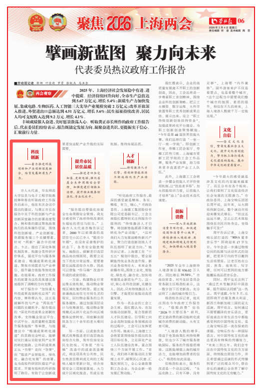 她强调,在推进国际航运中心与贸易中心建设的过程中,高素质技能型人才发挥着不可或缺的支撑作用。为此,要系统强化职业教育与产业需求的对接效能。此外,徐斌艳委员还提交了关于进一步优化上海市普陀区优质教育资源供给和聚焦职业教育垂类应用场景,培育Al+技能型人才的提案。