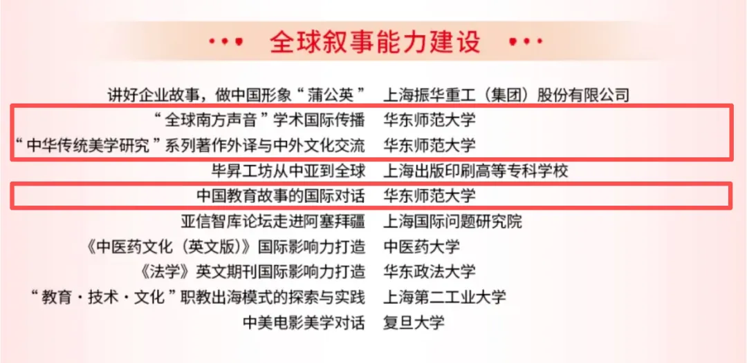 近日,2025年度上海市“中华文化国际传播”项目和“银鸽之光”第二十届国际传播优秀项目征集活动结果揭晓,华东师范大学共5个项目成功入围。它们,从上海出发,正在向世界讲述中国故事。