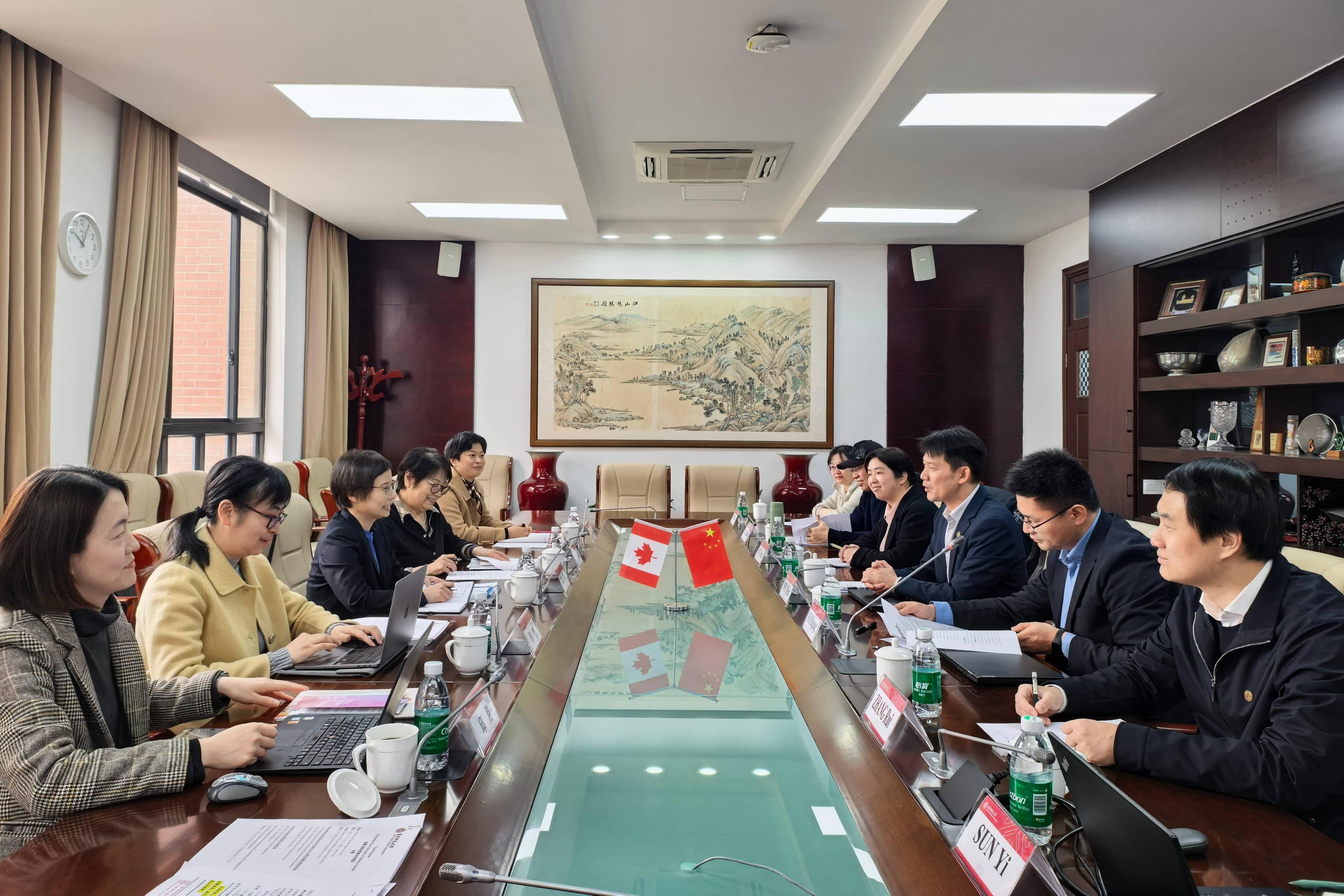 工作研讨中,学院代表依次介绍项目情况和合作设想。双方就多个学科领域本科双学位和中外合作办学项目拓展、中加学生长短期留学项目合作、师生学术互访与科研实习、课程共建等议题充分交换了意见。