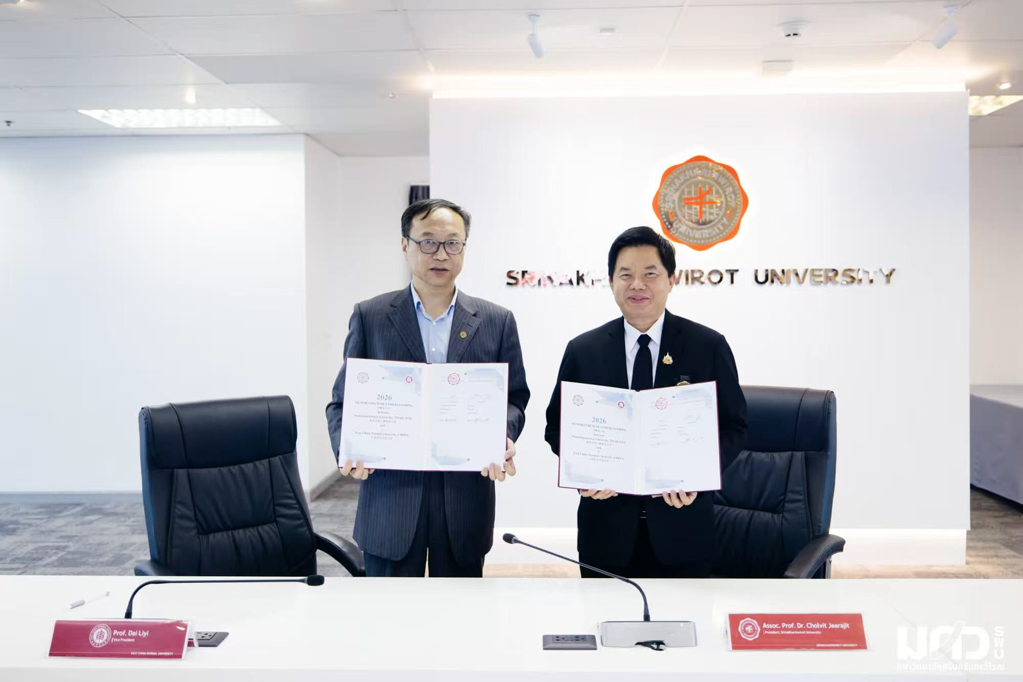 4月23日,代表团一行访问泰国诗纳卡琳威洛大学,与该校校长Cholvit Jearajit及相关职能部门负责人举行会谈,并正式签署两校合作备忘录。会谈中,双方就人工智能教育技术应用、学生交换等议题进行深入探讨,明确了后续合作的重点方向。