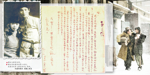 萧红与萧军合影。◆萧红写给萧军的第三封信。底图为电影《黄金时代》剧照