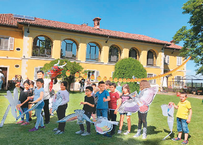 意大利都灵大学孔子学院开展中华文化走进意大利中小学课堂活动。图为小学学生在体验中国风筝。