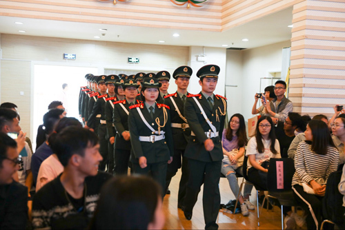 这18名同学都曾有一个共同的身份——中国人民解放军士兵,他们携笔从戎,为强国强军的梦想把青春挥洒在军营、在边疆、在战场。今天,他们又为了护卫国旗重新穿上戎装,成为师大校园中一道独特的风景。日后,他们将承担起两校区定期举行的升降旗仪式、在学校重大节庆日和活动中担任国旗护卫工作,负责对二级学院轮值升降国旗的团组织培训等。庄严的升旗仪式和降旗仪式将成为青年爱国主义教育的重要课堂。成立仪式上,国旗护卫队的队员们昂扬的精神、饱满的斗志感染了在场的学生,他们用言行鼓励同学们到基层去,到边疆去,到祖国需要的地方去,把青春华章写在祖国山河大地。