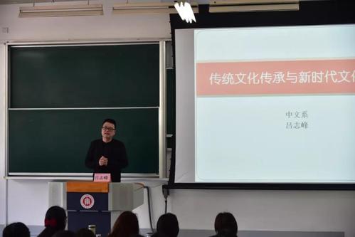 上海市五一劳动奖章获得者、第三届全国高校青年教师教学竞赛一等奖获得者吕志峰老师主讲了“新时代文化之声——传统文化传承与新时代文化自信”,告诉同学们在外来文化的冲击中要保持自己的判断和独立的思考,坚守文化自信。