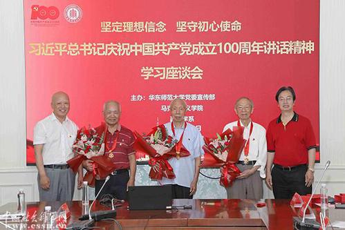 为庆祝中国共产党成立100周年,深入学习和贯彻习近平总书记在庆祝中国共产党成立100周年大会上的重要讲话精神,7月1日,由华东师范大学马克思主义学院、政治学系联合主办的“坚定理想信念 坚守初心使命”——习近平总书记庆祝中国共产党成立100周年重要讲话精神学习座谈会在华东师范大学举行。