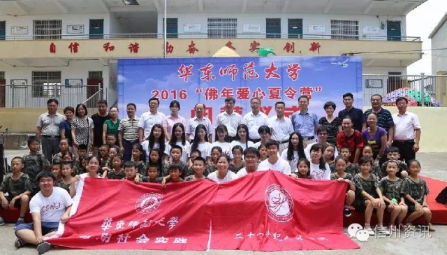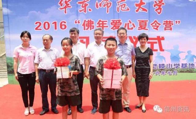 今天,2016年华东师大“佛年”爱心夏令营在信州区灵溪镇灵樟小学举行了闭营仪式,市委常委、副市长任友群,华东师范大学党委副书记方平,华师大团委书记朱文佳,市教育局党委书记 、局长张义科,区委副书记、区长王其中,区委常委、副区长黄微妤等参加闭营仪式。