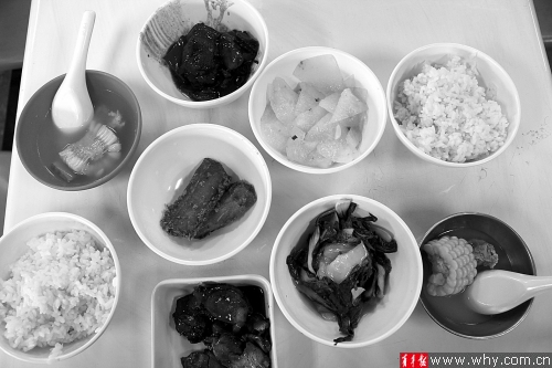 大家对特供套餐褒贬不一对于套餐的质量,大家的评价有褒有贬。有不少人表示,套餐的分量不够。林智同学说:“味道都还不错,就是分量太少了,根本不够两个人吃,我觉得这些差不多够我一个人吃的。”他和女朋友两人很快就吃完了套餐, 然而两人都没有吃饱,只好去普通窗口又打了一些饭菜。不过林智对食堂的做法还是表示理解,“毕竟才11元,价格这么低,食堂也不可能提供太多。”在学校联华超市工作的张阿姨,也来食堂围观了“双11特供套餐”。