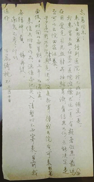 周志高(以下简称周):我至今还保存着马老师1962年3月10日在医院给我写的回信。看到这封信就像看到了马公愚先生,就想起了我跟他交往的过程。