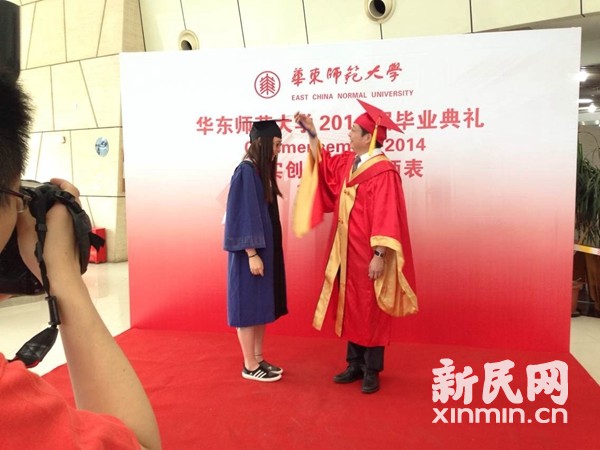大屏幕里滚动播放同学们千姿百态的毕业照、最受喜爱的“男神”教师的毕业寄语……今天一大早,华东师大闵行校区图书馆前宽阔的大草坪上,5000余名身穿各色学位服的毕业生们等待着毕业典礼的精彩时刻。