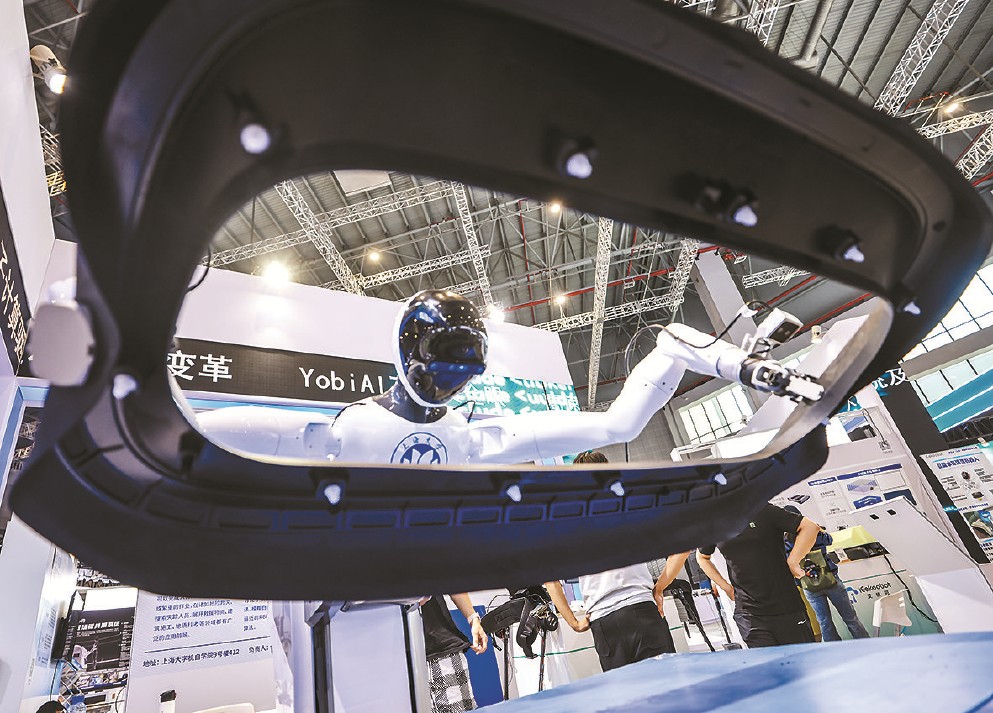 在第25届中国国际工业博览会高校展区,68所高校拿出了580项科创成果。上海大学研发团队带来的机器人现场演绎了工业物流搬运场景。本报记者 袁婧摄