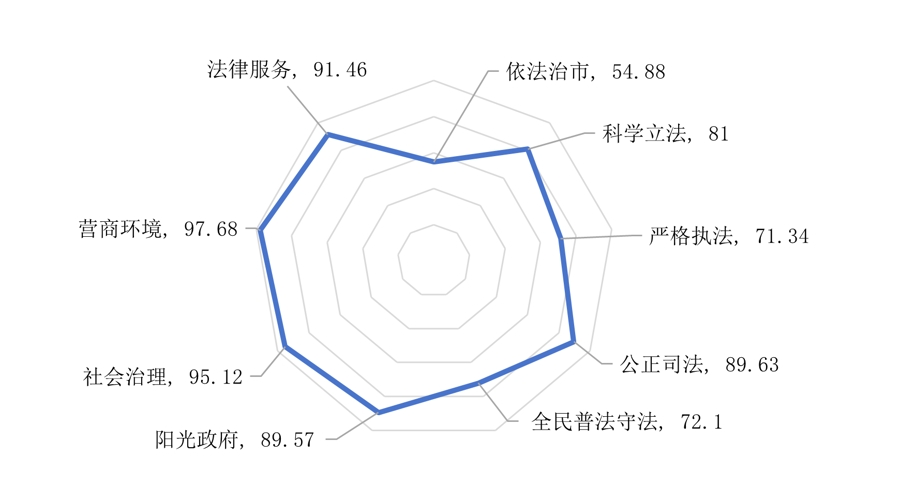 长三角城市法治测评九大指标得分情况