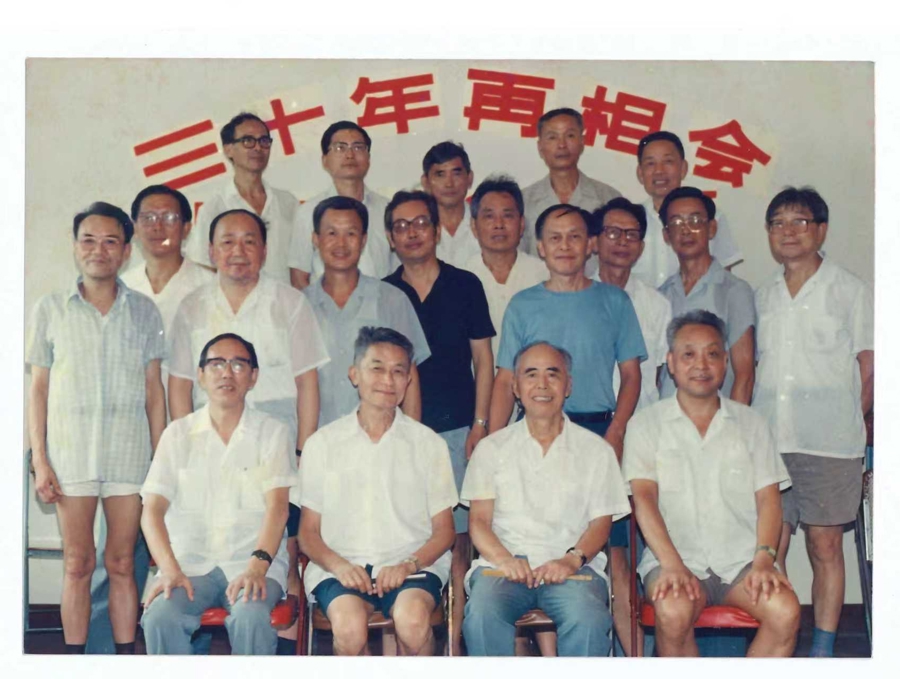 1990年8月,与中文系60届一班校友合影。前排左起:齐森华、徐中玉、钱谷融、马鼎山