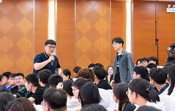 2025年5月,在河北科技大学“热点问题半月谈”第500期特别活动上,该校马克思主义学院教师耿直与学生互动。受访者供图