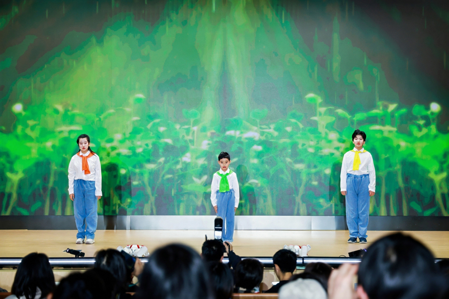 孩子们像一颗颗破土而出的种子,迎着阳光,努力生长绽放出“幸福之花”。