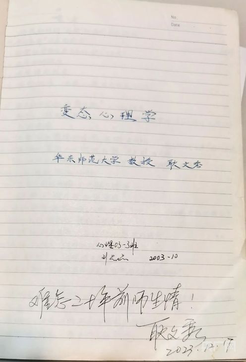 一些师生缘分也延续至今。在新疆师大学生工作部工作的刘晶晶,是耿文秀在新疆师范大学支教时的学生。2023年底,耿文秀受邀赴新疆师范大学讲学,刘晶晶特地带上当年的课堂笔记。“她和我说,‘耿老师,你的笔记我是记得最认真的,你的课我从来没逃过’。你说感动不?这是20年前的笔记本啊!”耿文秀动容地说。