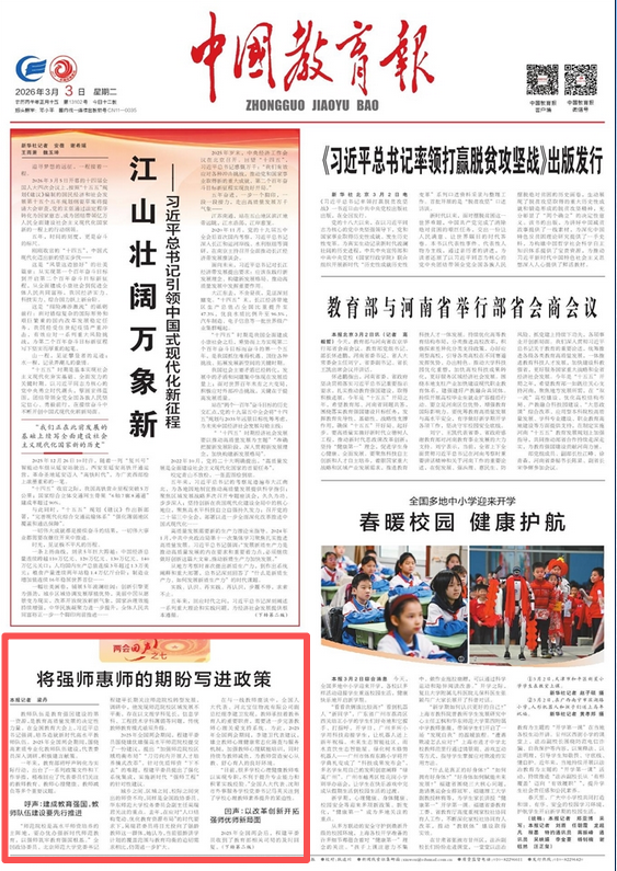 中国教育报 头版 | 将强师惠师的期盼写进政策
