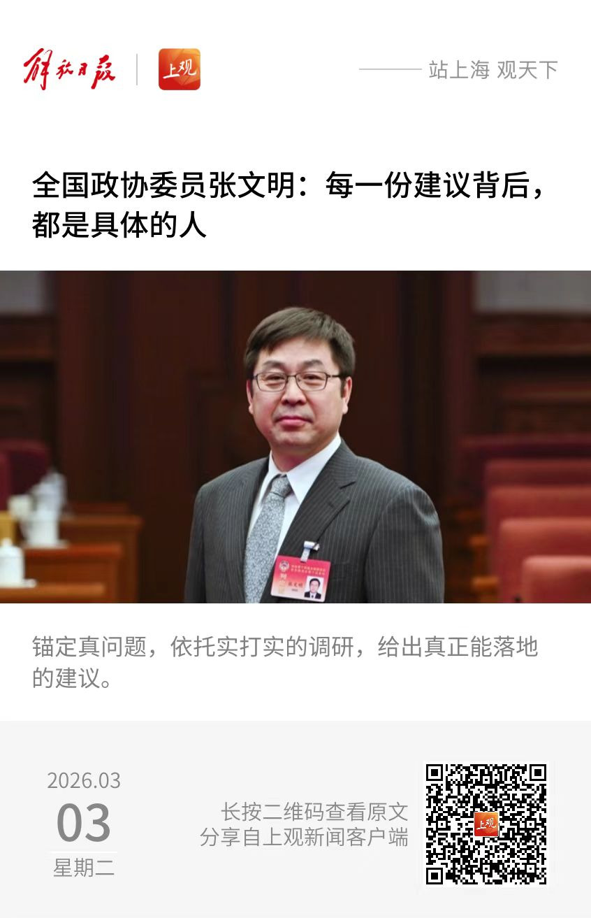 上观新闻 | 【解放日报】全国政协委员张文明:每一份建议背后,都是具体的人