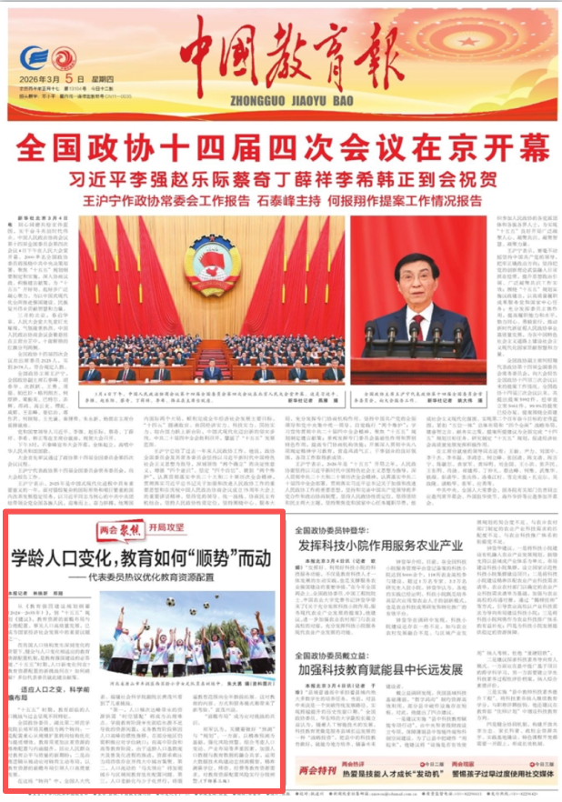 中国教育报 头版 | 学龄人口变化,教育如何“顺势”而动——代表委员热议优化教育资源配置