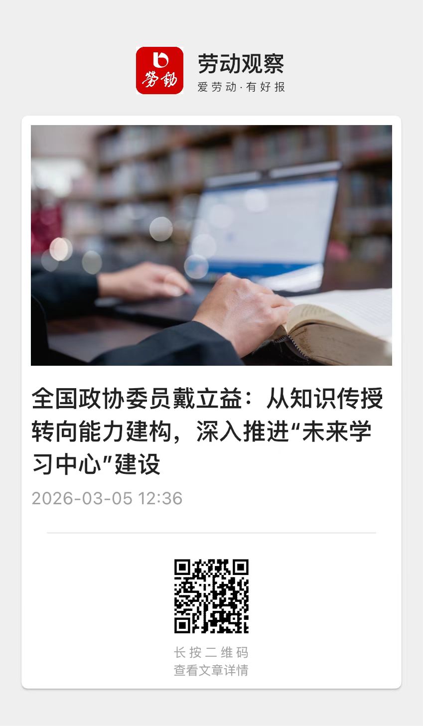 劳动观察 | 全国政协委员戴立益:从知识传授转向能力建构,深入推进“未来学习中心”建设