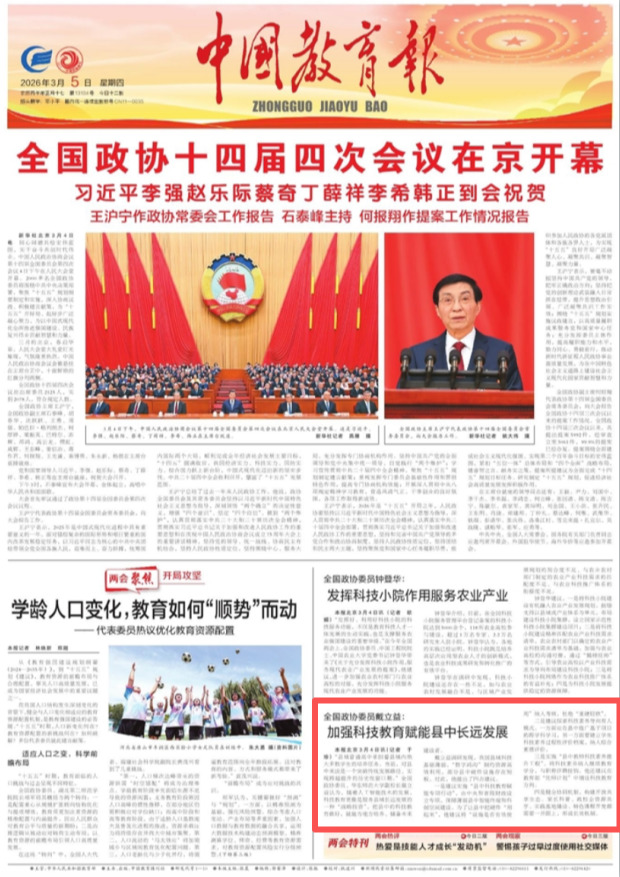 中国教育报 头版 | 全国政协委员戴立益:加强科技教育赋能县中长远发展