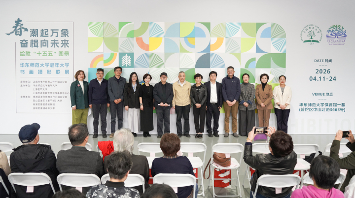 4 月 11 日,“春潮起万象 奋楫向未来——绘就‘十五五’图景”华东师范大学老年大学书画、摄影联展正式启幕,展出沪上老年学员200余幅精品力作,以笔墨传情,勾勒时代新风,以光影叙事,描绘美好生活,充分展现新时代老年群体老有所学、老有所乐、老有所为的精神风貌。